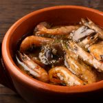 讃岐のにんにくで香りをつけた、丸ごと「瀬戸内小海老のアヒージョ」。
