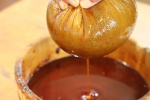 幾度か絞りを重ね、染み出る醤油の色と芳醇な香り。