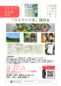 近日開催✽「命のめぐり」としてやさしく紐解く「ウマブドウ茶」無料講習会のお知らせ